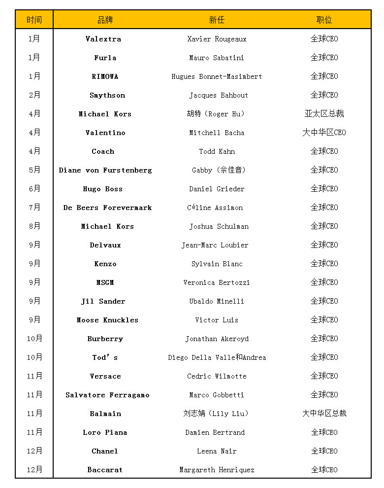 2021年24家奢侈品牌CEO换届