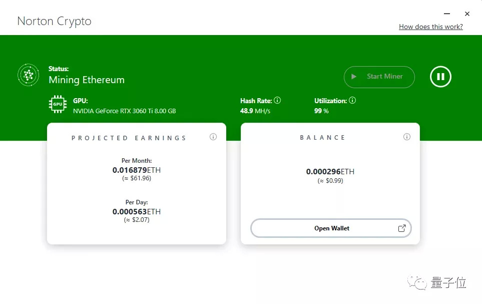 当然,最赚的还是诺顿“本人”,只要尝试这个功能的人多了(有机会尝试的用户还是挺多的,大部分用户用的英伟达GTX 1060就能满足这个挖矿软件的硬件要求),积少成多、聚沙成塔,光抽成它可就能抽一笔不小的数目了。