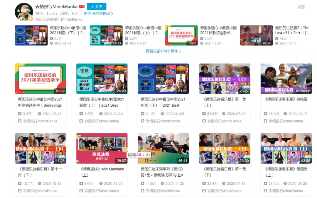 除了玩梗,很多音乐人都尝试出了不少有效的宣发新玩法,比如乐队“表情银行”就开启了自制音乐综艺的尝试。前年疫情爆发之后,他们先是诞生了《无事声非》的创意,每期用不到10分钟的时间改编一首大家耳熟能详的歌曲,展现改编的全过程;接着又自制音乐评论类节目《德国乐迷看乐夏》,节目第一集就累计获得了111万次观看,超2万转赞评,好评诸多。如今,他们在B站已经收获了十万粉丝。