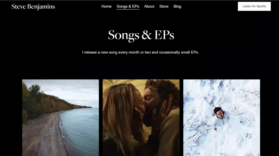 在国外,这样的音乐人自建网站有很多,知名音乐人有红辣椒乐队、碧昂斯、泰勒·斯威夫特等,独立音乐人也不少。比如Eric Haugen,北卡罗来纳州的吉他手和讲师,他在网站上售卖吉他课程,还以虚拟方式提供个人吉他指导。还有多伦多的歌手兼词曲作者Steve Benjamins,他专注于创作可以与各种情绪状态联系起来的音乐,用网站将他的音乐进行充分的可视化表达。