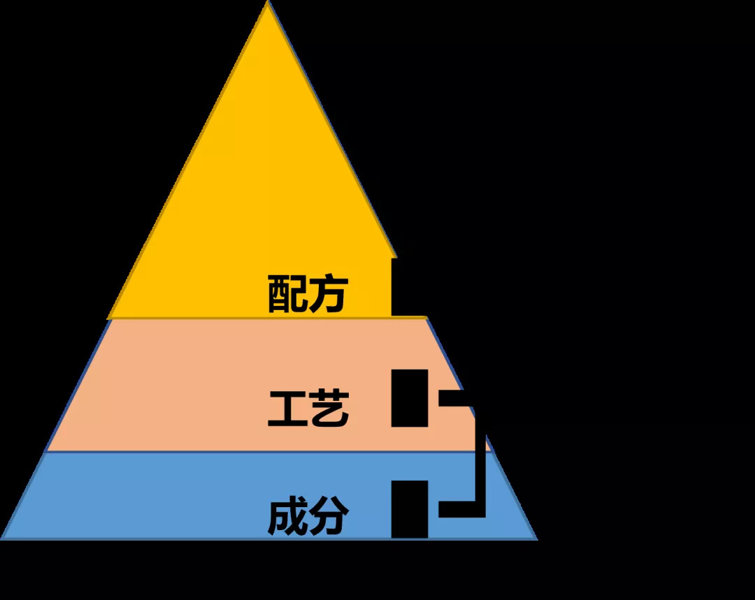 引用杨建中教授的图,我们可以了解到产品是配方+制作工艺+原料的组合体,其中占据高位的便是配方,这是因为在产品使用同一成分与相同标准的制作工艺时,配方便成为产品差异化的重要砝码。