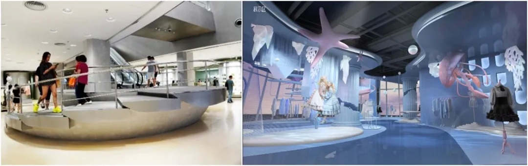 左:bosie 淮海中路店内景|图片来源:赢商网,右:诗与万花镜上海静安寺首店内景|图片来源:36氪