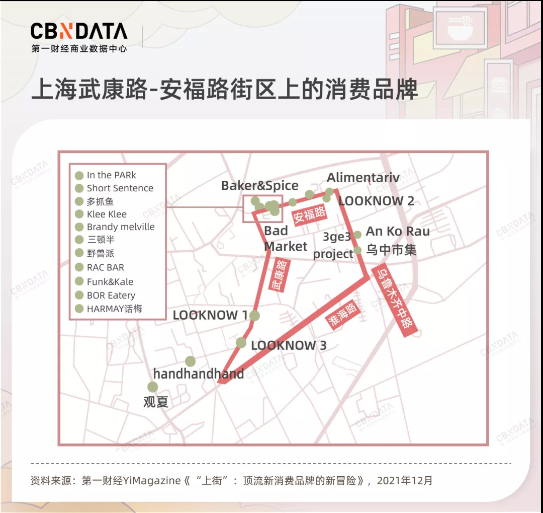 2021年9月,三顿半将第一家线下概念店开在了上海最有名的网红街道之一安福路,与HARMAY话梅、Brandy Melville成为邻居;12月初,潮流服饰品牌INXX旗下inxxstreet全国首家旗舰店在杭州南宋御街的一处文化遗址开业,将宋代建筑风格与现代时尚元素相结合。中国李宁首家城市主题概念店选址成都宽窄巷子,门店保留原有建筑基础,并融入成都市井气息,试图以“一城一店一风格”的模式深耕地方市场。