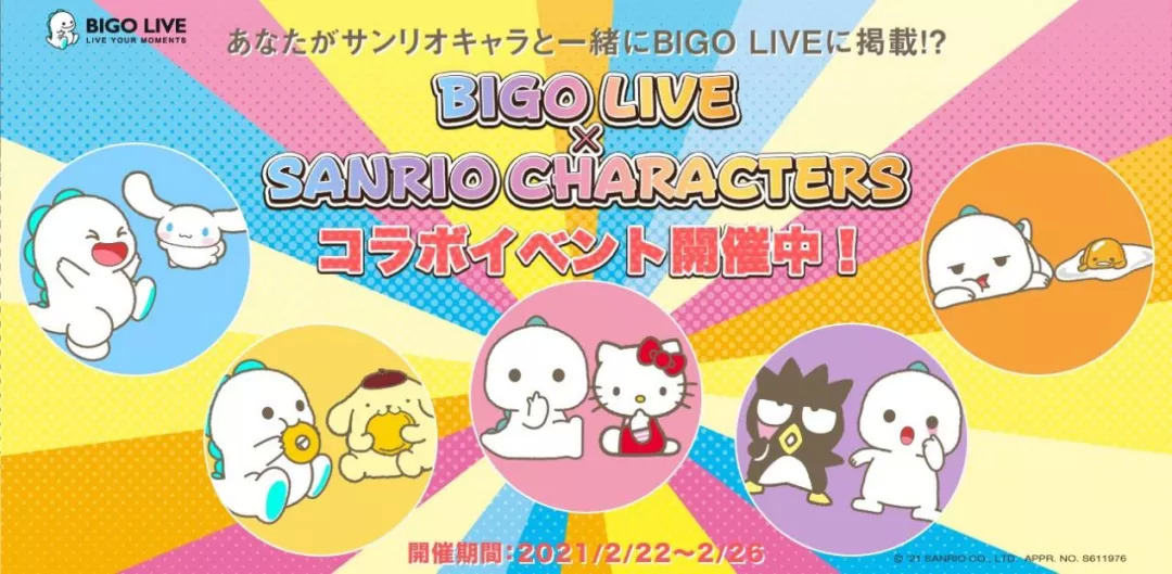 在Bigo Live的Twitter官方账号上也可以看到,随着其进入日本市场时间越来越长,围绕产品吉祥物GOちゃん的海报、活动数量也在不断增加。2021年2月,Bigo Live与三丽鸥举办了卡通形象联动活动,推出GOちゃん与Hello Kitty等结合的卡通布偶等周边。