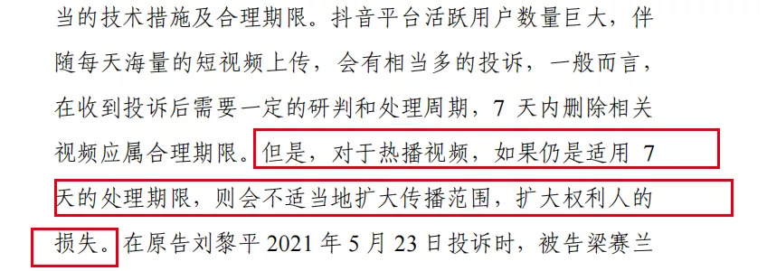 可以说,上述法院的判决,其实对于短视频平台的处理侵权的时速,提出了更高要求。