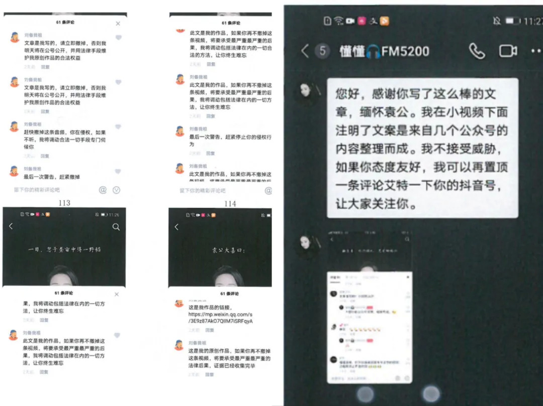 刚开始,刘黎平仅在上述视频下留言,声明这篇文章是自己原创,另附了原文链接,但一直没有得到回复和正视。