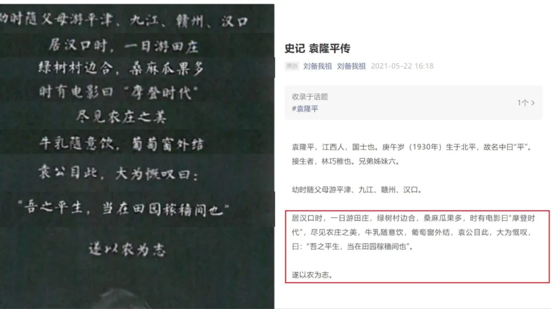 同为湖南人的刘黎平,怀着悲痛又崇敬的心情,用自己擅长的古文体,在个人公众号里写下了悼念文章《史记·袁隆平传》。