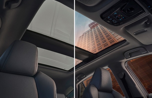 新车采用可调光式全景天幕,采光面积较大,1秒即可切换调光模式和透光模式,两种模式下都可阻挡99%以上紫外线,在日照猛烈的晴天下也能让车内通透敞亮。