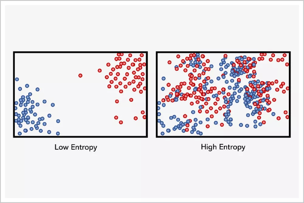 在一个封闭系统里,熵(entropy),即无序和混乱程度,总是增大的。