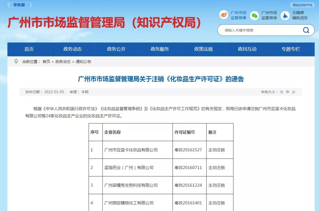 近日,广州市市场监督管理局发布通告显示,已依法申请注销广州市亚蓝卡化妆品有限公司等24家化妆品生产企业的化妆品生产许可证,且它们均属于“主动注销”。而这也意味着,此前行业所预言的“将有一大波企业退出”,已然成为了现实。这24家也仅仅只是一个开始。
