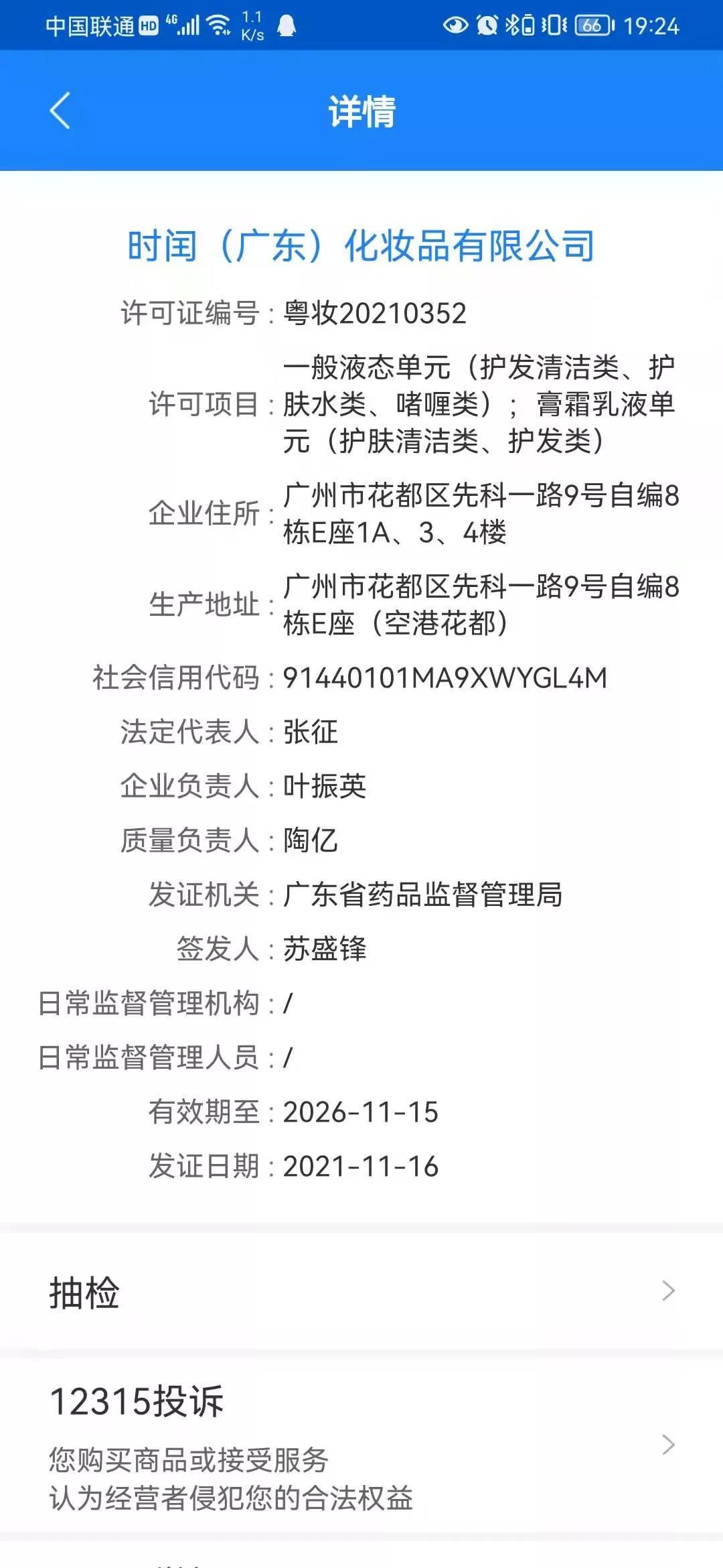 成立于2010年(含)之后的15家企业中,最“年轻”的企业则是时闰(广东)化妆品有限公司(下称广东时闰)。该公司成立于2021年6月22日,根据化妆品监管APP信息显示,广东时闰于去年11月15日才获得化妆品生产许可证,仅3个月不到,就主动注销了化妆品生产许可证,目前暂未查询到该公司生产的相关产品的备案信息,需要说明的是,在国家药监局化妆品生产许可信息管理系统服务平台已查询不到该企业。