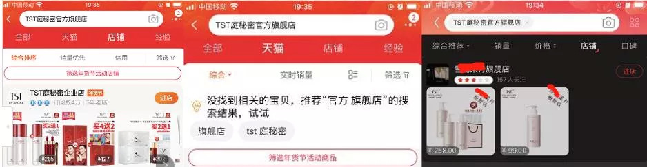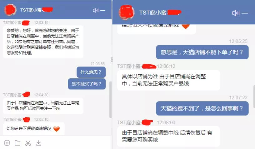 青眼调查发现,目前淘宝、天猫、京东已无法搜索到TST庭秘密官方旗舰店。就此事,青眼通过TST官网联系到人工客服。对方告诉青眼,“由于目前店铺尚在调整中,当前无法正常购买产品。”当青眼问及上述平台为何搜索不到店铺,该客服未正面回复。