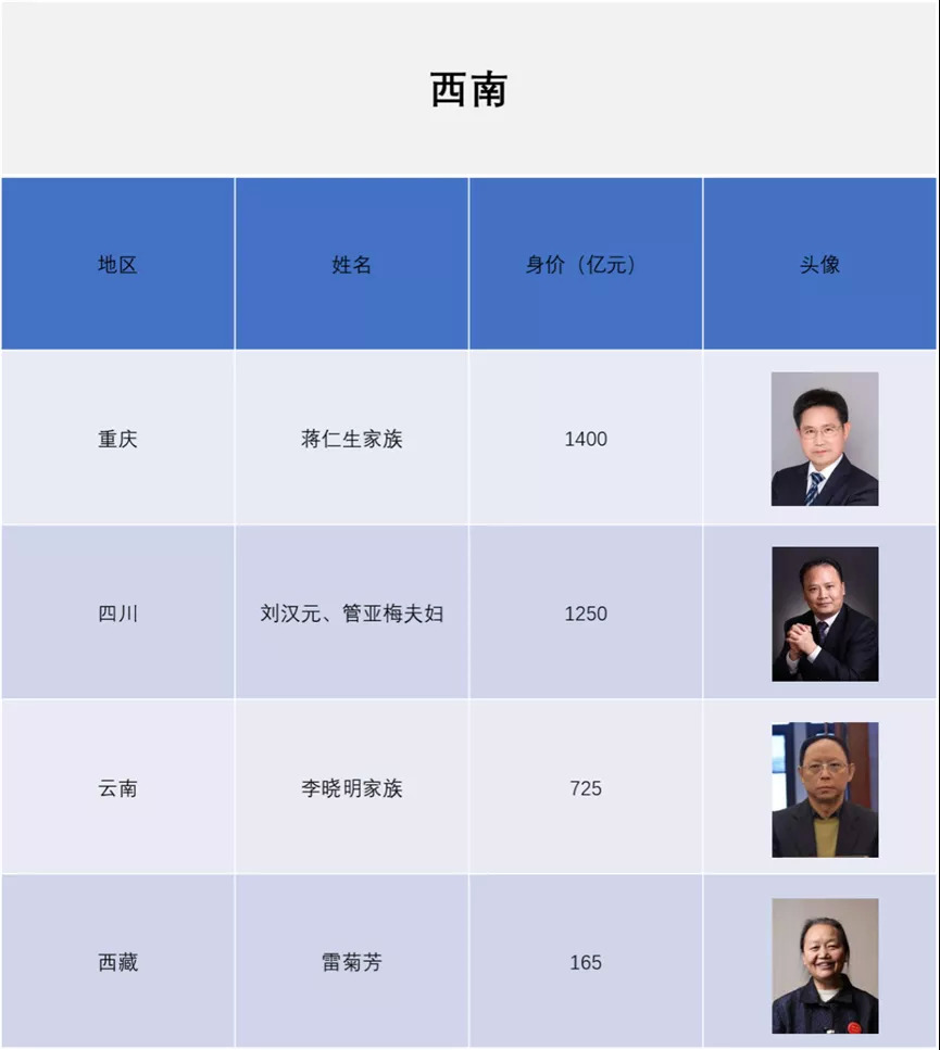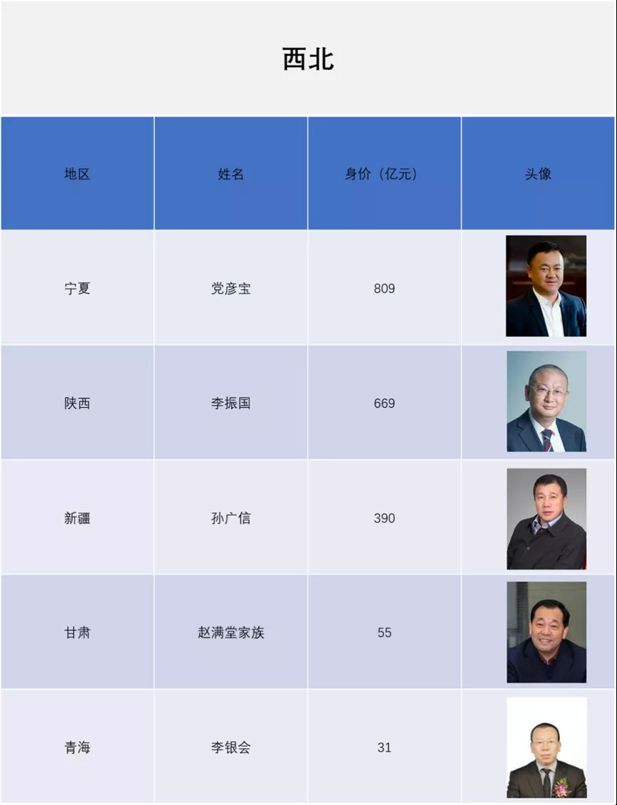 我们选择了几位(西南、华北、华东、西北、华南)区域首富,以首富为鉴或许可以洞见成就自我的方向。