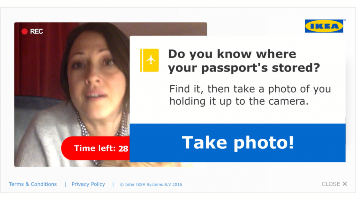 宜家英国和Skype合作的直播也极大地强调了用户的参与度。部分Skype用户会收到弹窗广告,被邀请参加宜家的“护照挑战”:在30秒内迅速找到护照并对着摄像头合影的用户将获得一份大礼。