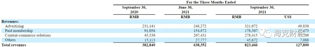 财报显示,2021年第三季度,知乎营收8.235亿元,其中线上广告业务收入3.211亿元,占比39%;商业内容解决方案业务收入2.784亿元,占比33.8%;付费会员业务收入1.783亿元,占比21.7%;包括在线教育、电商在内的其他创新业务收入4567万元,占比5.5%。