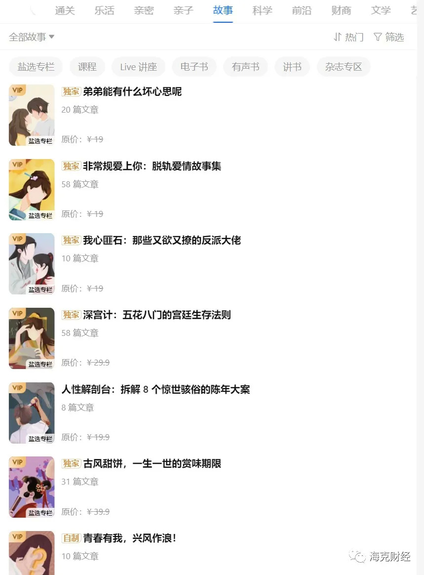 知乎会员内容主要包括盐选专栏、电子书、杂志、Live讲座等,其中专栏和电子书是现在较受欢迎的产品。