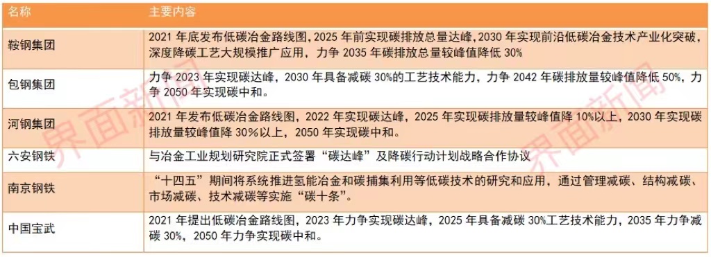 此外,2021年以来,中国宝武、河钢、包钢、鞍钢等多家钢企也发布了碳中和行动计划,基本目标为在“十四五”期间实现“碳达峰”。