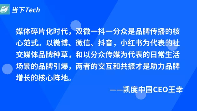 凯度中国CEO王幸也表示:媒体碎片化时代,双微一抖一分众是品牌传播的核心范式。以微博、微信、抖音,小红书为代表的社交媒体品牌种草,和以分众传媒为代表的日常生活场景的品牌引爆,两者的交互和共振才是助力品牌增长的核心阵地。