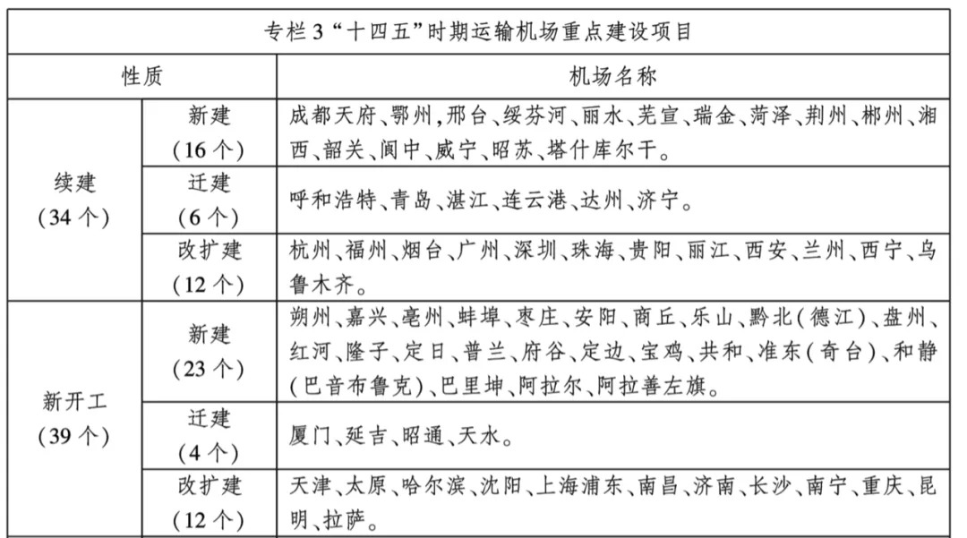 此外,石家庄、长春、南京、宁波、温州、合肥、郑州、武汉、银川等机场,有望在“十四五”启动改扩建的前期工作。