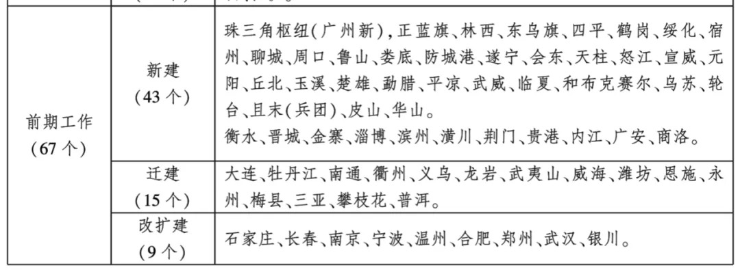 启动前期工作(新建)的43个机场,除了珠三角枢纽(广州新)机场,其余也基本上都是支线机场。