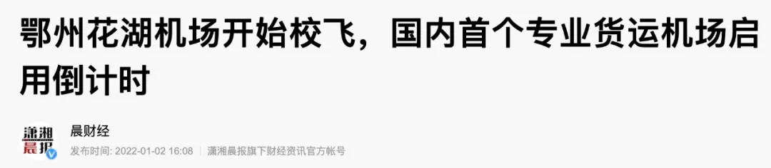 事实上,作为国内唯一一座以航空货运主业的民航机场——湖北鄂州花湖机场,目前已经进入了启用倒计时。