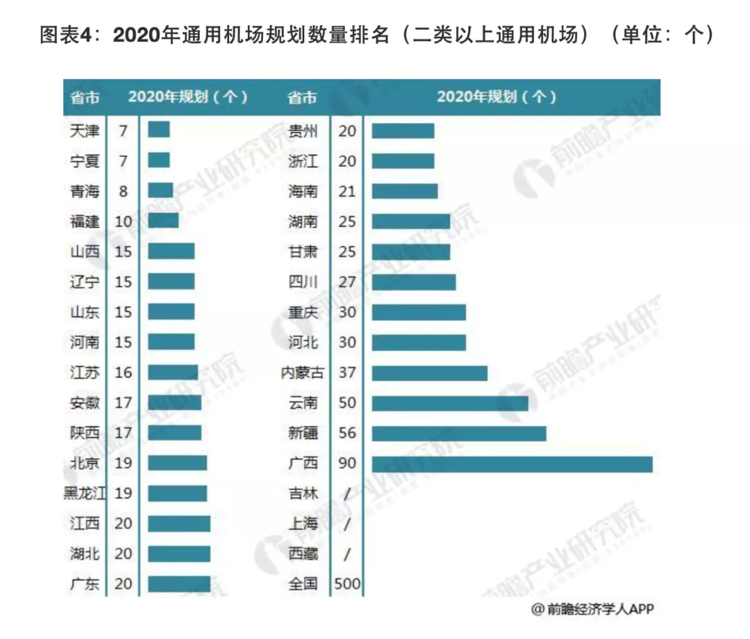 而从通用机场规划数量来看,全国机场数量最多的省份主要是广西、新疆、云南等边远地区。