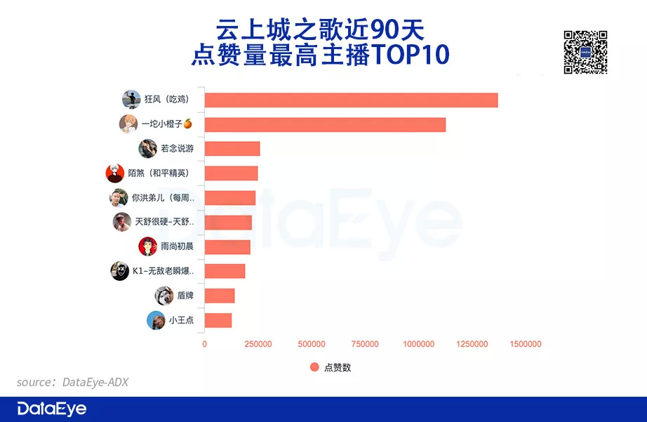 中重度,以《云上城之歌》为例,多为与达人合作进行,而非签约绑定。近90天点赞量最高的主播为“狂风(吃鸡)”、“一坨小橙子”,其它主播点赞较低,同样呈现集中化趋势。