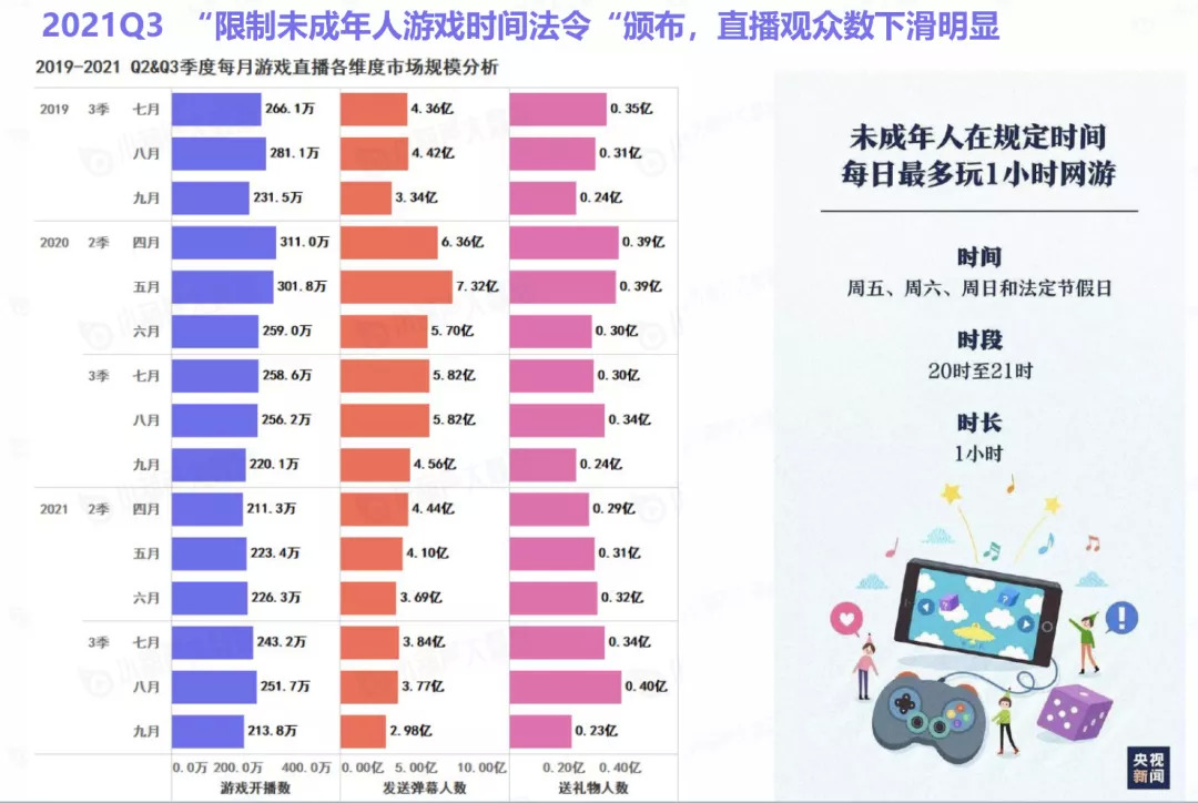 其四,2021Q3,“限制未成年人游戏时间法令“颁布,导致游戏直播用户明显下滑。