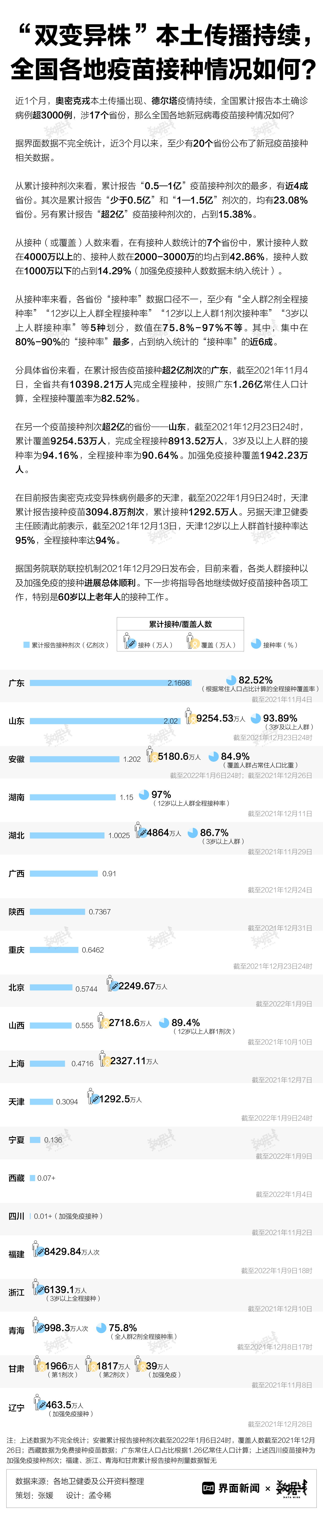 数据 | “双变异株”本土传播持续,全国各地疫苗接种情况如何?