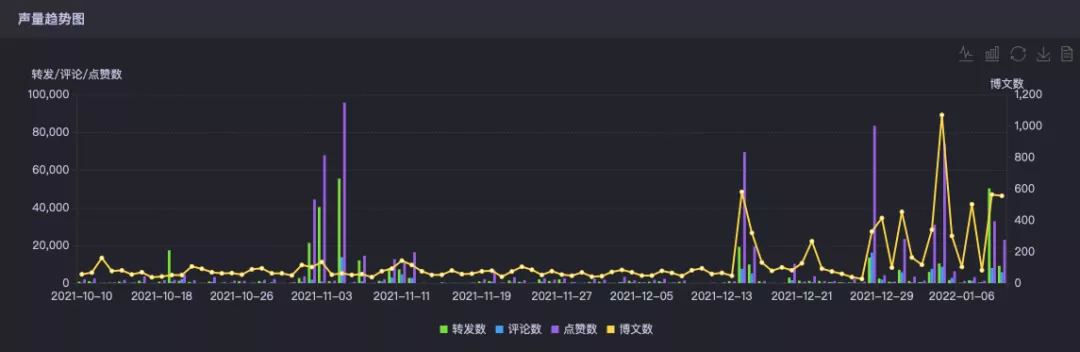 从情感偏向中能看到,受众对王老吉品牌的情感值是14,正面讨论的内容高幅度大于负面,这也侧面说明了对于消费者来说,此次定制体验在一定程度上是具有差异性且有价值的。