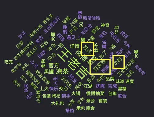 “百家姓”、“定制”、“姓氏”、“图腾”等关于此次营销的相关内容,不出意料地出现在了网友对王老吉品牌讨论的高频词汇中。