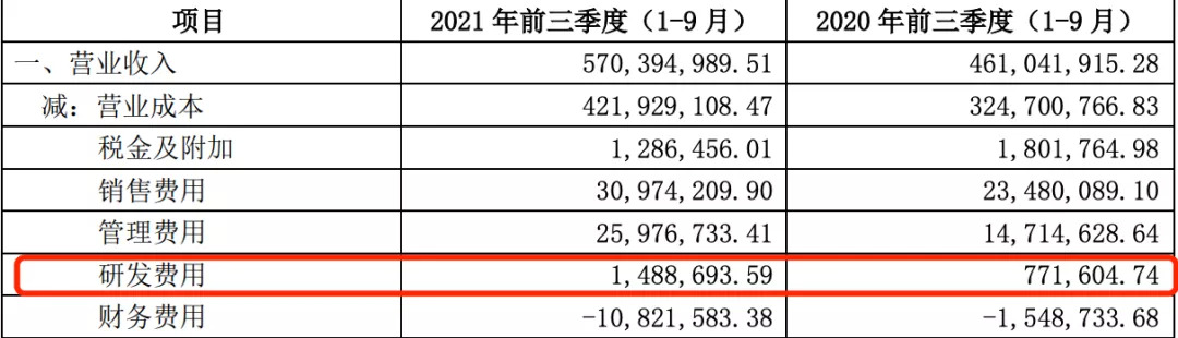 味知香2021年前三季度研发费用,图源味知香2021年三季报