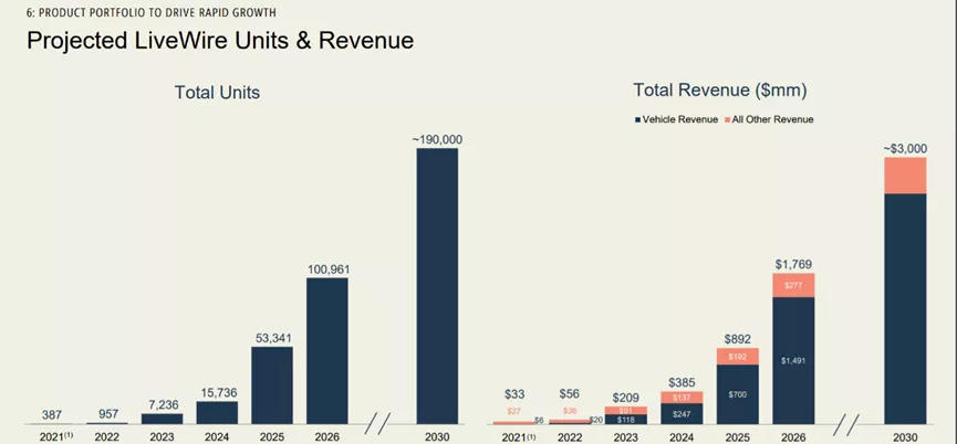 目前推出的LiveWire One在城市骑行时的续航里程约为约为235公里,百公里加速时间为3.5秒,定价也由最初发布时的29799美元调整为21999美元。需要注意的是,LiveWire One目前仅仅售出387辆,可见此车型可能仅为市场试水,并未进入量产阶段,但并不影响这家年轻的公司为自己2026年销量计划,立下了一个超10万辆的目标,并完成近35亿人民币的融资。