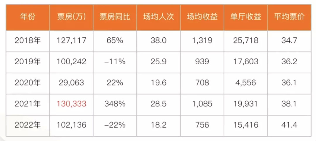 一个残酷的现实是,虽然票价在上涨,但单个影院平均盈利能力还在下降。据拓普数据,2021年电影银幕数增长到8.2万块,电影总票房是472.58亿,也就是说单块银幕一年仅分到57万元收入。而在2018年、2019年,单块银幕可分到的收入分别为101万元、91万元,仅相较2019年,2021年就下降了37%。