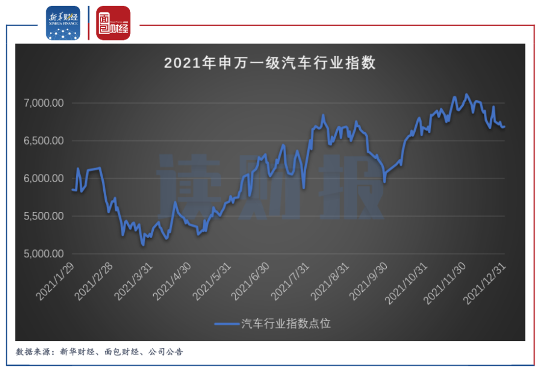 2021年全年,申万一级汽车行业指数由5850.33点上涨至6689.82点,区间涨幅为14.35%,同期沪深300指数区间下跌近5.2%。截至2022年1月11日收盘,汽车行业市盈率(TTM,整体法剔除负值)为30.1倍,市盈率在申万一级28个行业中排在第10位。