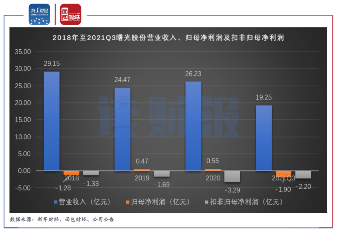 曙光股份是一家以整车、汽车车桥及零部件为主营业务的上市公司,该公司有“黄海客车”和“曙光车桥”两大产品。2021年前三季度,曙光股份实现营业收入19.25亿元,同比增长46.92%;归母净利润亏损1.9亿元,亏损同比扩大;扣非归母净利润亏损2.2亿元,自2013年以来连续9年同期亏损。业绩亏损扩大的同时,曙光股份人事变动也愈发频繁,近三年来公司除了更换三任董事长之外,也更换了2位总裁、4位董事会秘书。