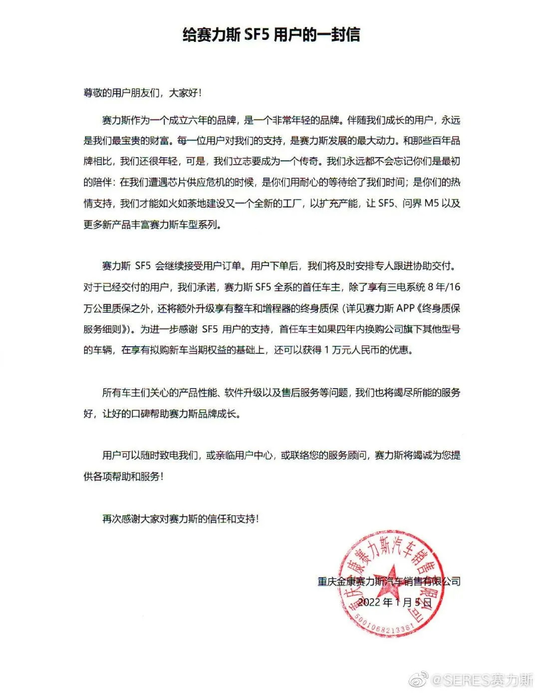 尽管官方反复澄清不停产、SF5用户可正常到AITO品牌店享受相关售后服务,但是感觉SF5被“抛弃”的车主们依然很不满。