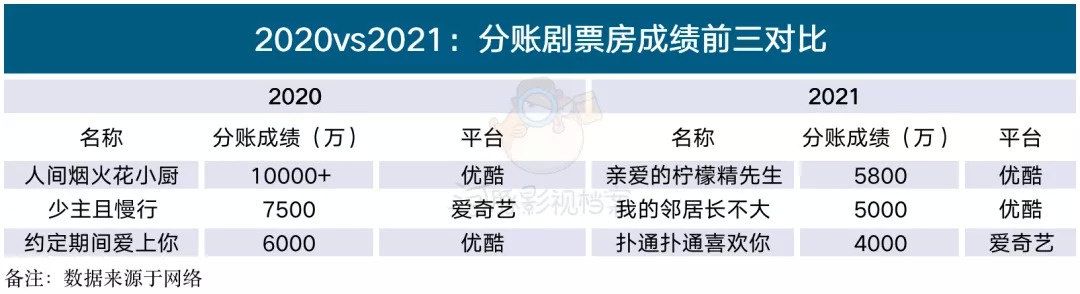 而内容to C模式的探索也触摸到了天花板,分账剧和网络电影在这一年,在数据上都未突破2020年的成绩。