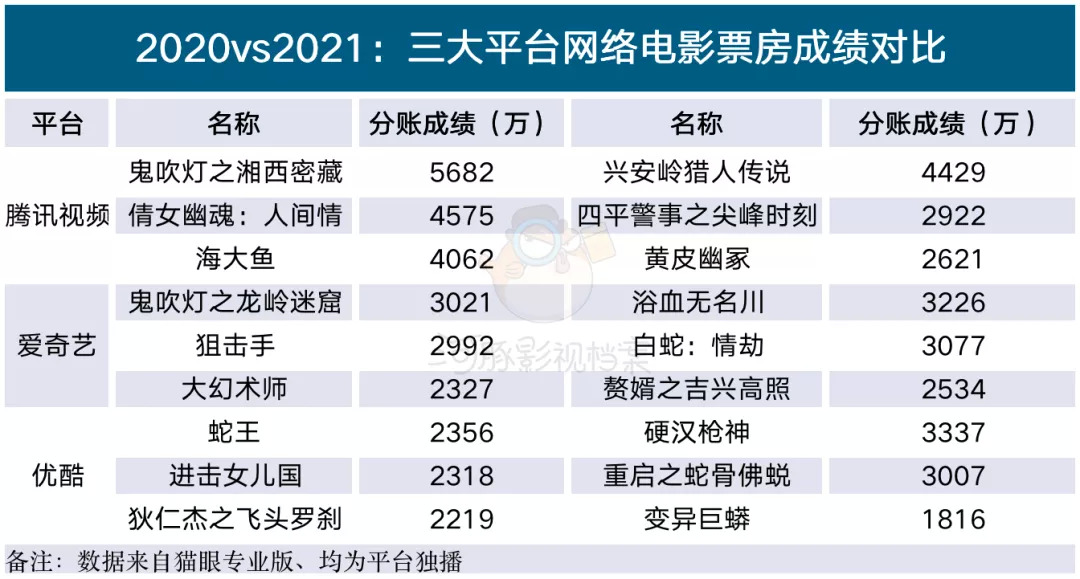 网络电影票房始终在5000万之下徘徊,最高分账票房相比较2020年下降了超过千万,离破亿的目标相去甚远。