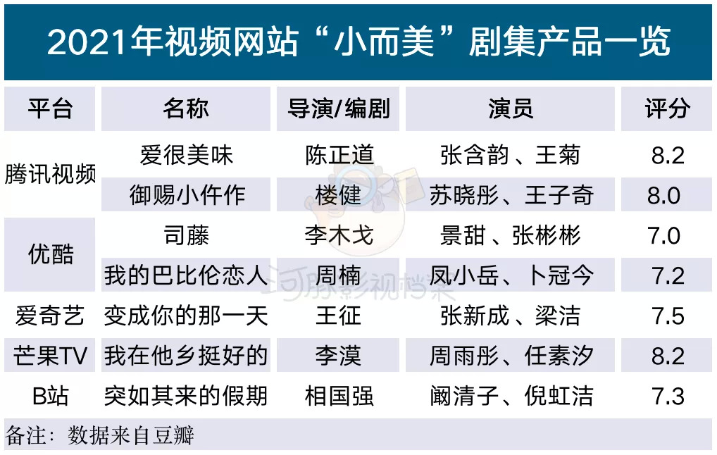 相比较头部剧集需要在平台利益、演员、制作方之间多方博弈,小成本作反而有了更多空间,宽松的创作环境和强烈的生存意图让2021成为“小而美”爆发年。