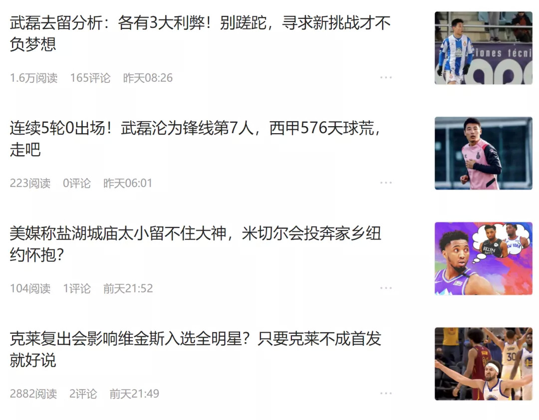 深度长文很难支撑我们运转,于是我们也只能根据市场环境进行调整,以前主要是深度文章,现在也加入了一些短平快的足球资讯新闻内容,比如当日比赛的一些动图,或者类似微博的那种短消息,甚至还开始涉猎一些NBA的内容,措辞也更加接地气,标题也开始“头条范儿”。