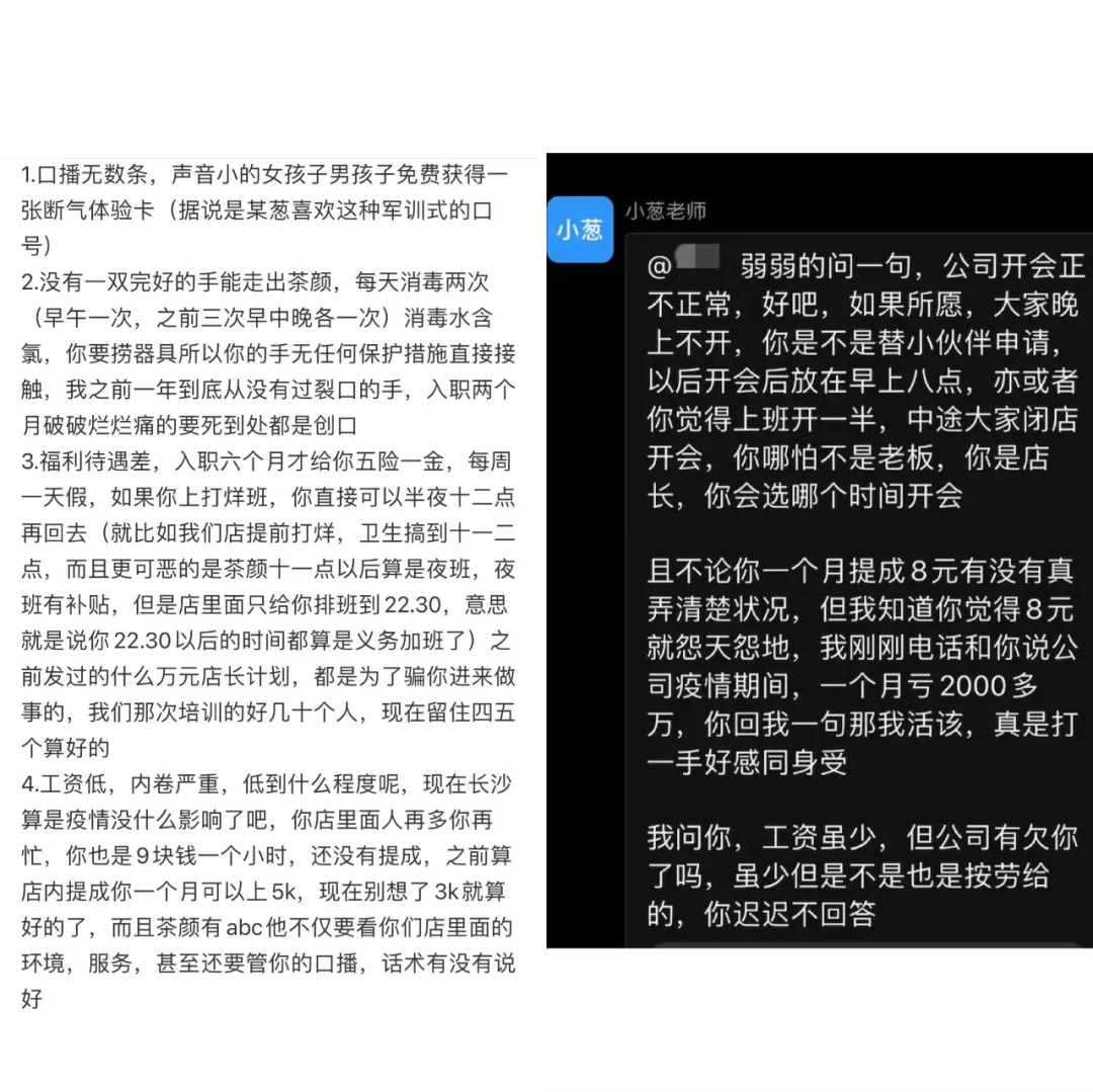该员工强调,基于这样的背景,使得茶颜悦色内部管理混乱、流程冗杂、内斗严重。“内部小团体情况严重,直接导致本分做事的反而不如会拉帮结派的。”