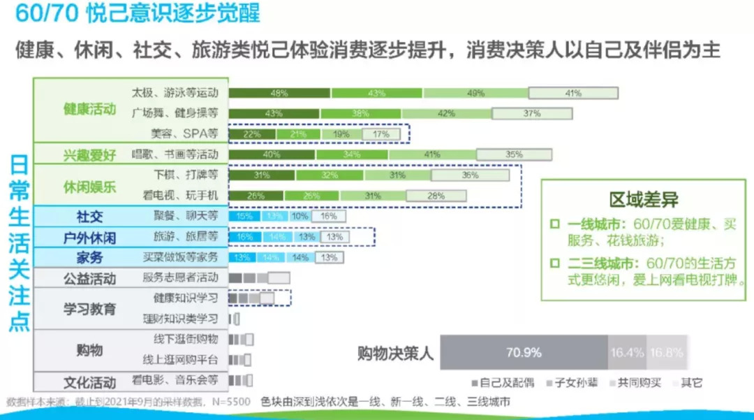 随着进入退休生活,老年人的时间和精力得到了解放。根据AgeClub日前发布的《中国式养老真相洞察健康个护报告》,60、70后悦己意识逐步觉醒,健康、休闲、社交、旅游类悦己体验消费逐步提升。