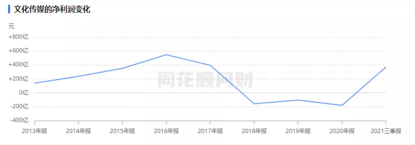 可随着未来疫情的结束, 市场上期待复苏的声音愈来愈多,限韩令、打击偷税漏税、演员高收入限制等问题也或被开放或被解决。根据同花顺数据统计:文化传媒板块的净利润在2020年后大幅提升,已逐步接近2016年的利润峰值547.73亿元。