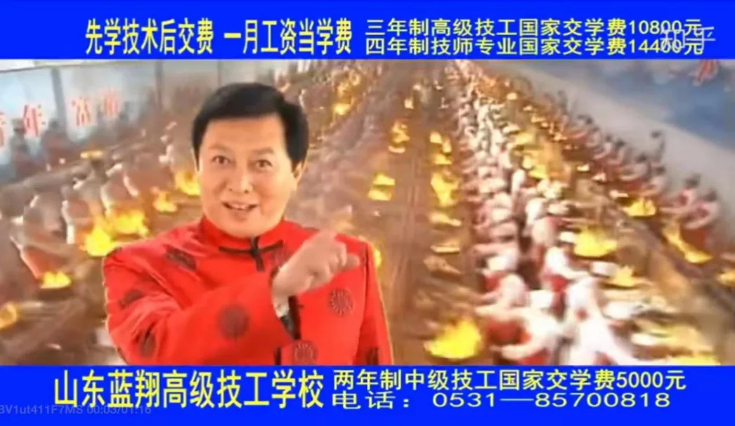 在“飞车短片”之前,更为人熟知的是2006年那句“挖掘机技术哪家强?中国山东找蓝翔!”竖着大拇指的唐国强曾经在各个电视台循环出现,至今还存在于一代90后、00后的记忆中。