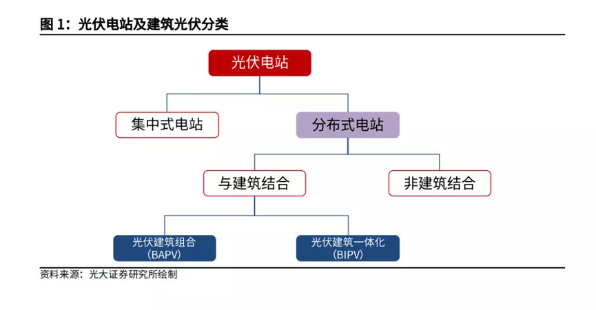 光伏建筑一般分为两种形式。一种是BAPV,我们通常称之为后置式光伏,就是在现有建筑基础上安装光伏系统发电。另外一种是BIPV,光伏建筑一体化,即建筑的构成使用光伏组件来建设。