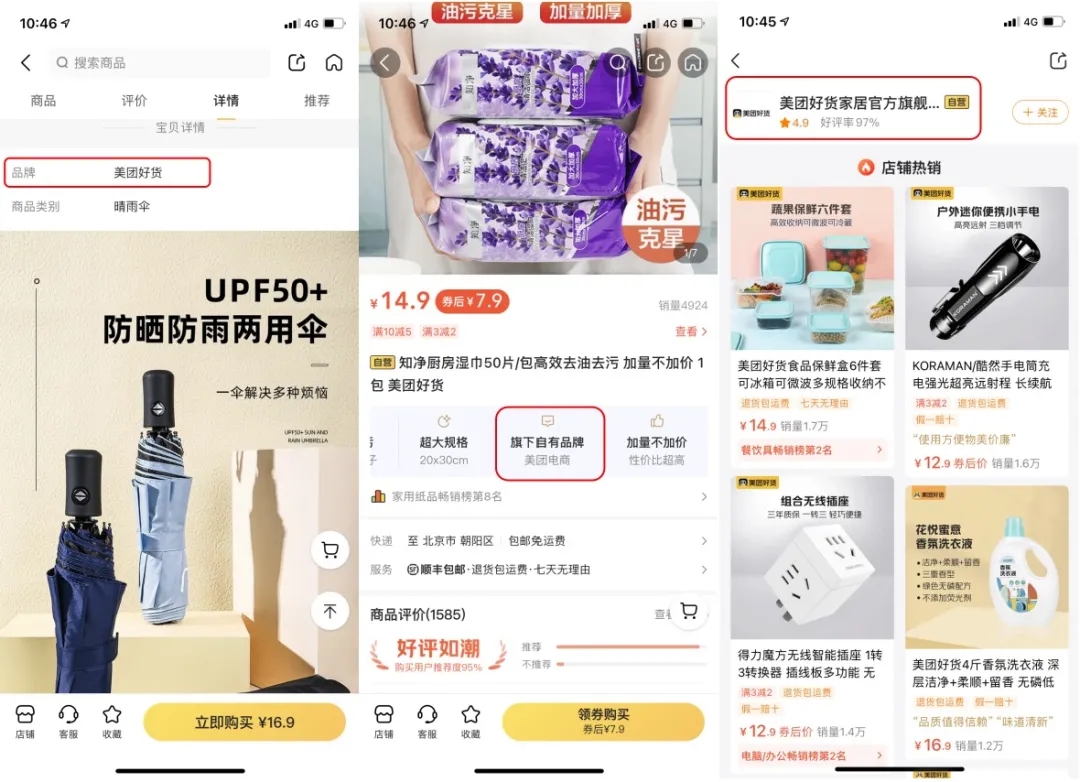 到了美团好货时代,更像京东,其独立App官方介绍写到“美团旗下的B2C精选电商,秉承精选商家、严控品质的理念.....”就差把正品行货写上去了。目前的“美团电商”,像是一个更强调商品牌、品质的拼多多。乍一看,品类和价格与拼多多类似,但仔细看,所售商品多为知名品牌,不像拼多多那么鱼龙混杂。