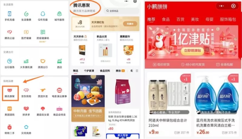 电商跟广告一样,是任何拥有庞大流量的企业都会用的变现手段。连联通、移动这些运营商的App里都接入了电商业务,更不用说DAU超7000万,MAU3亿多的美团。拼多多从阿里、京东的夹缝中崛起,给其他人树立了榜样和信心。这两年,百度借“搜索电商”回归;腾讯也借小程序推出腾讯惠聚、小鹅拼拼两款电商产品;抖音、快手更是携直播红利,迅速成为电商一极。