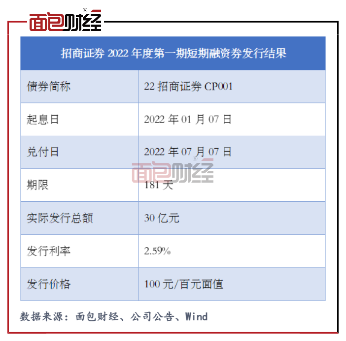 近日,招商证券发出公告称2022年度第一期短期融资券已发行完成,实际发行总额30亿元。