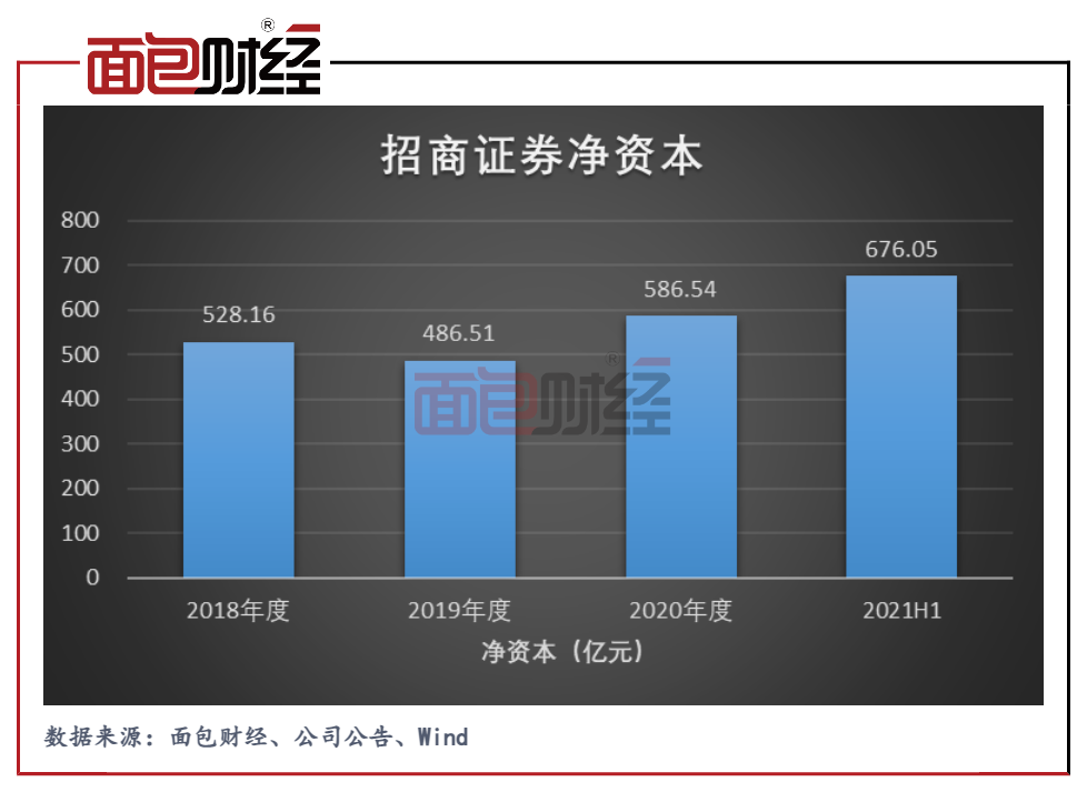 截至2021年上半年末,招商证券的净资本为586.54亿元,较上年年末增加100.03亿元,主要系当期,公司完成了六次长期次级债的发行,合计金额达245亿元。